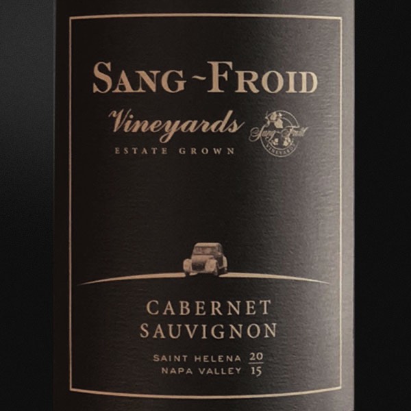 2015 Sang-Froid Vineyards estate grown whole berry Cabernet Sauvignon—AVA St. Helena, California—was sourced from a single 1.06 block planted in 1989 using Grace Family Vineyards Bosche cuttings in 110R rootstock. 2016, 2017, 2018, and 2019 vintages are blended with grapes from contiguous blocks planted in 1997 with small lot fermentation in 70 percent new, thin stave, tight grain French Oak from Taransaud, Boutes, and Redmont.